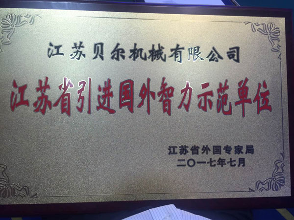今日,江蘇貝爾機械獲得了由江蘇省外國專家局授予的 江蘇省引進國外智力示范單位 稱號。"中國的快速發展,及國家對科學研究的重視,使中國逐漸開始成為全世界科學家向往的國度,"國家外國專家局局長張建國說。